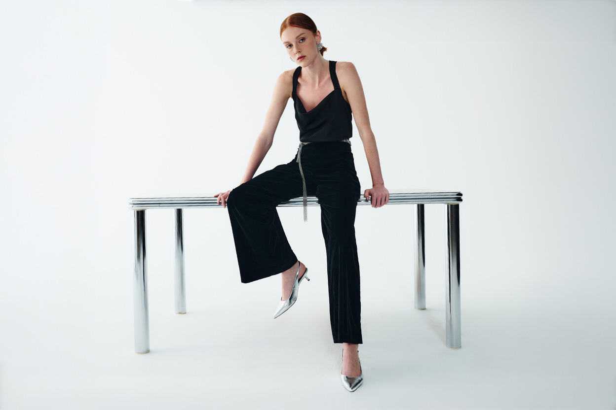 Black, velvet and sparkling details: the perfect mix for winter festivities.
