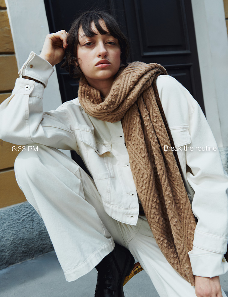 Complete the outfit with a classic navy or micro-check peacoat. Loafers are updated in contrasting black and white: where elegance blends tradition and trend.