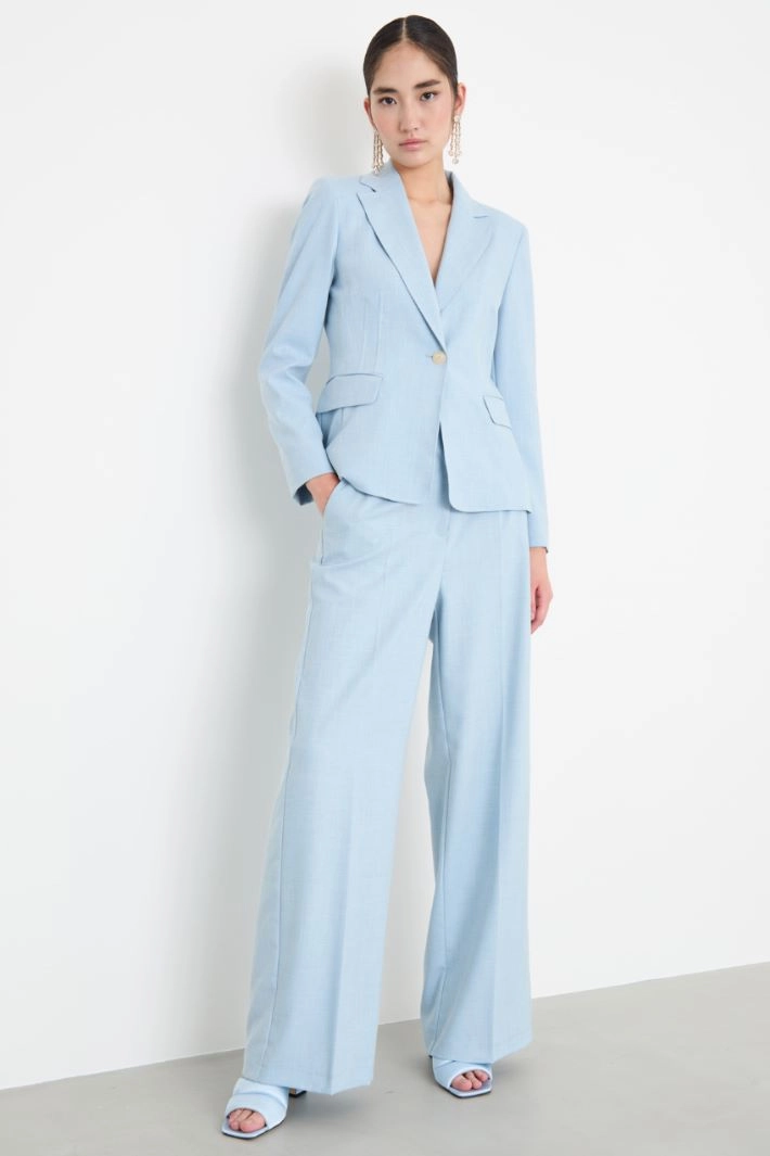 Straight-fit blazer crafted in viscose-blend canvas. This lined piece features a lapel collar, long sleeves and flap pockets on the front. Single-button fastening.