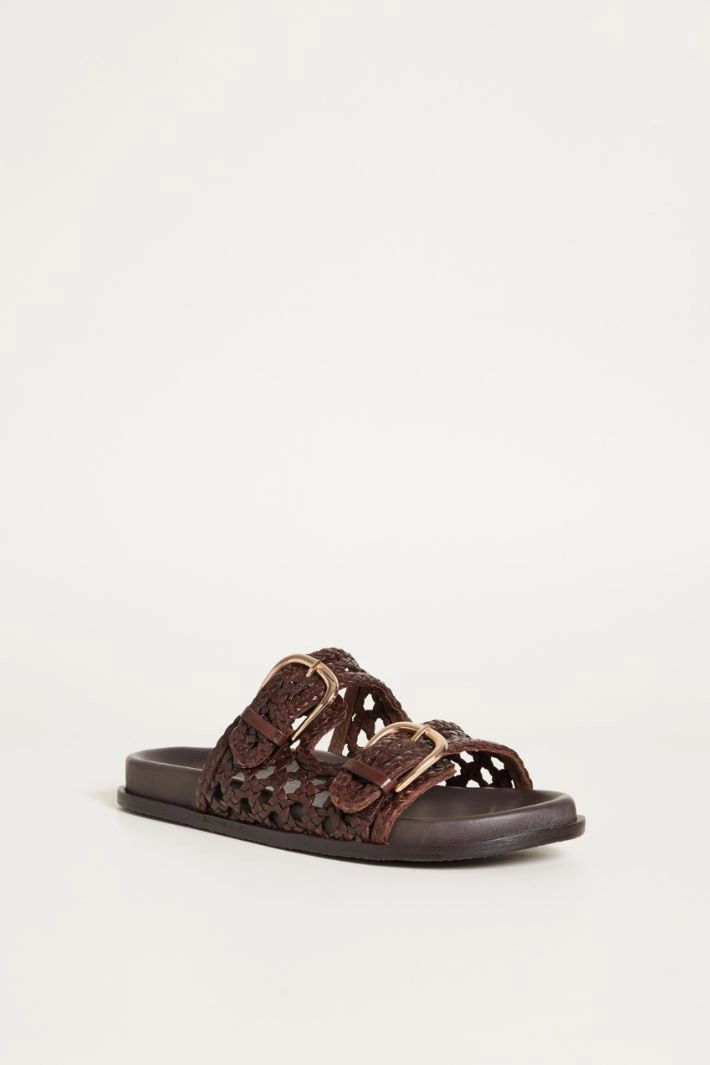 Double-strap leather slides