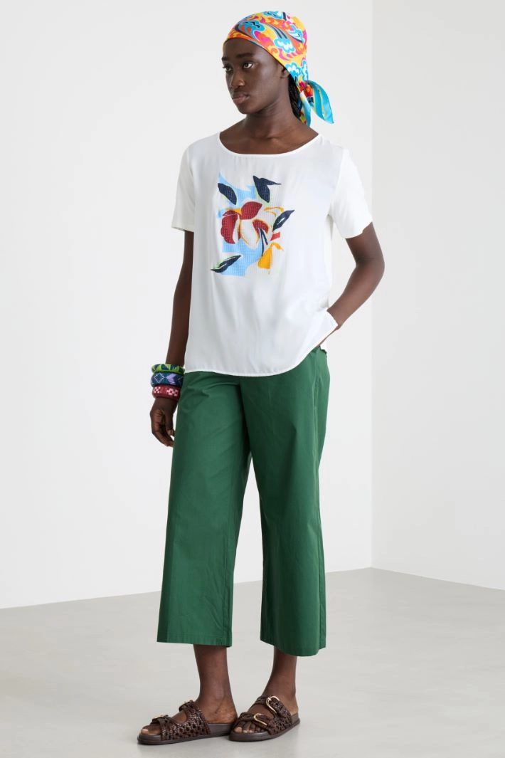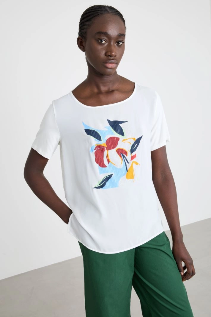 Crepe de chine and jersey T-shirt