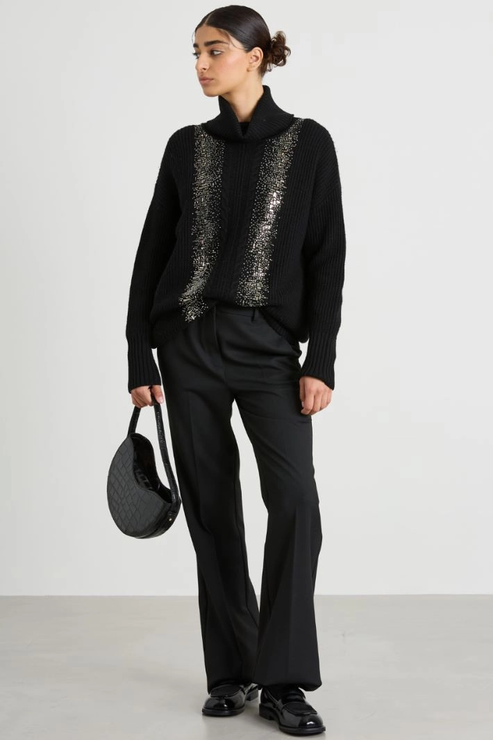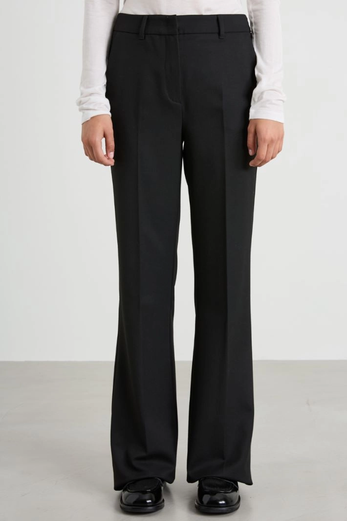 Straight-fit trousers in stretch viscose-blend gabardine, with belt loops at the waist, side French pockets and welt pockets on the back, crease along the length and hidden fastening with zip, button and hook.
