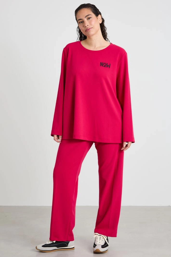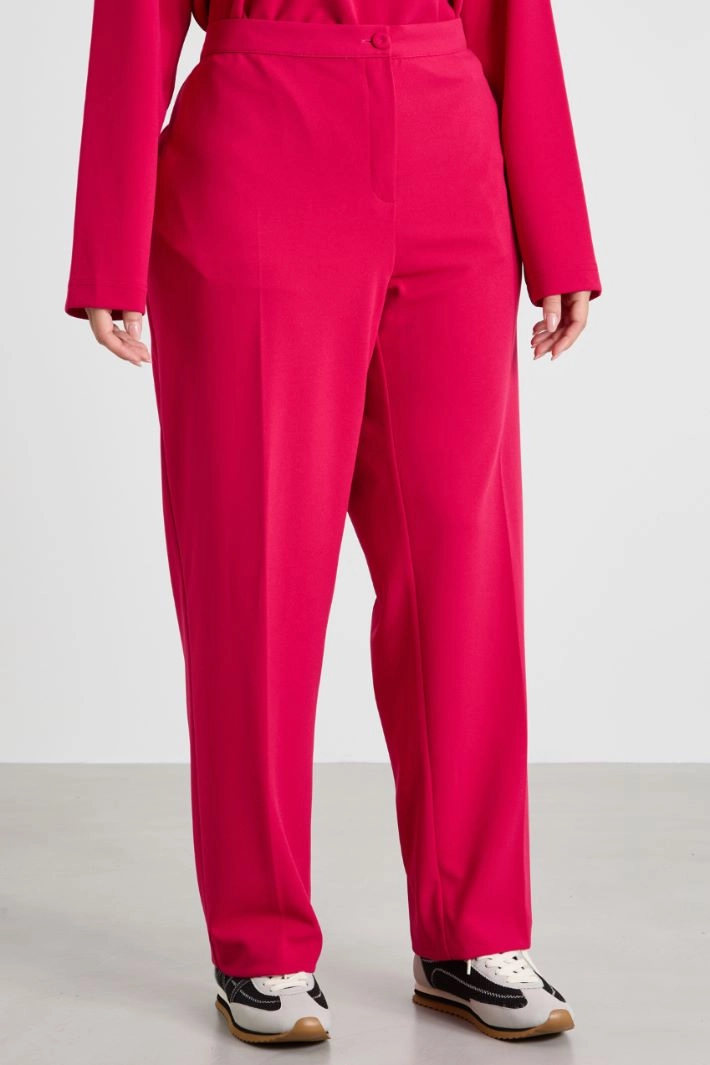 Cigarette trousers in stretch crepe jersey, with elasticated insert at the waist on the back, pressed crease lengthwise and fastening with hidden zip and covered button.