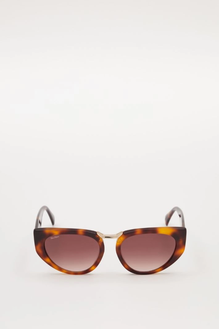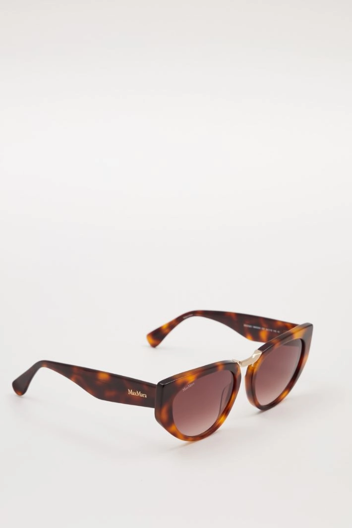 Resin cat-eye sunglasses with gold detail on the bridge.