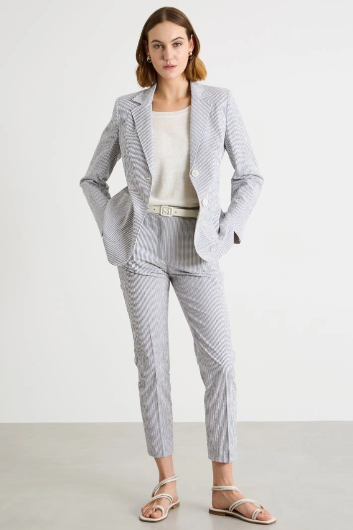 Tailored blazer crafted in cotton seersucker. This lined piece features a lapel collar, patch pockets on the front, long sleeves and a centre-back vent. Button fastening.