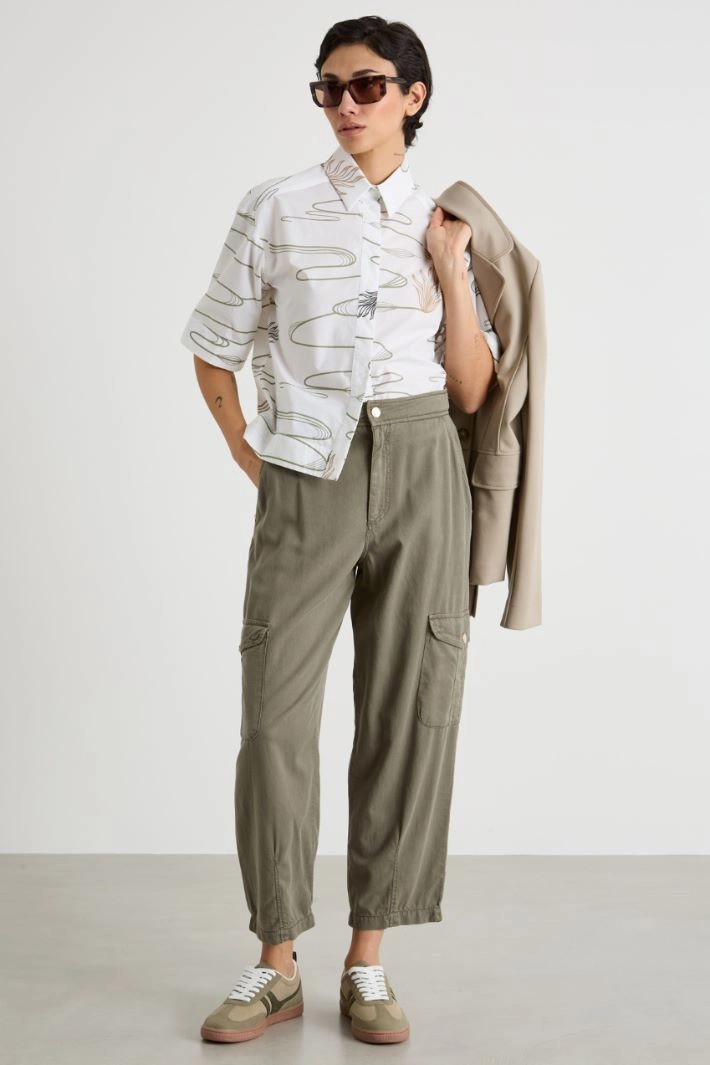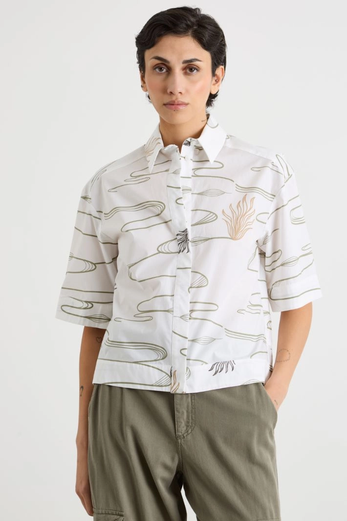 Straight-cut shirt in printed pure cotton, featuring a pointed collar and short sleeves. Button fastening.