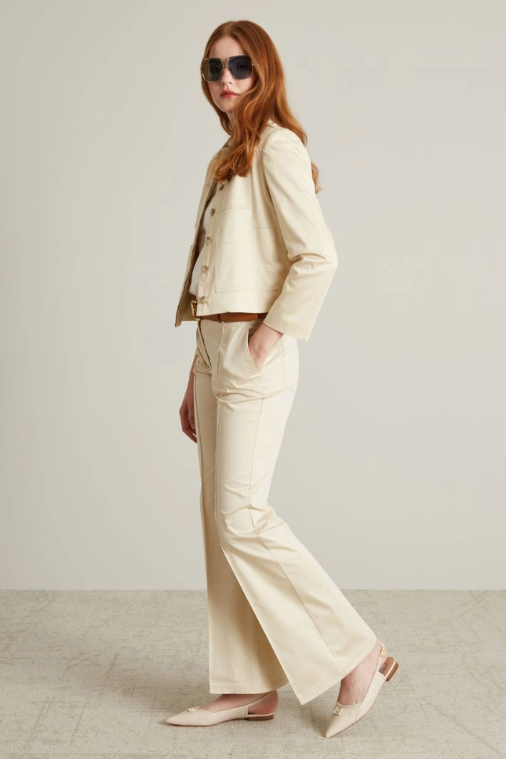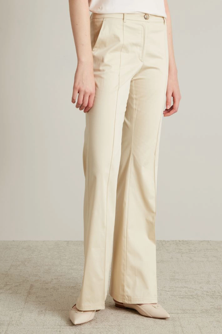 Flared trousers with stitched pleat