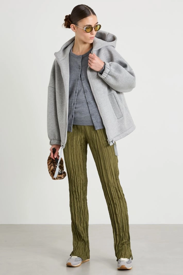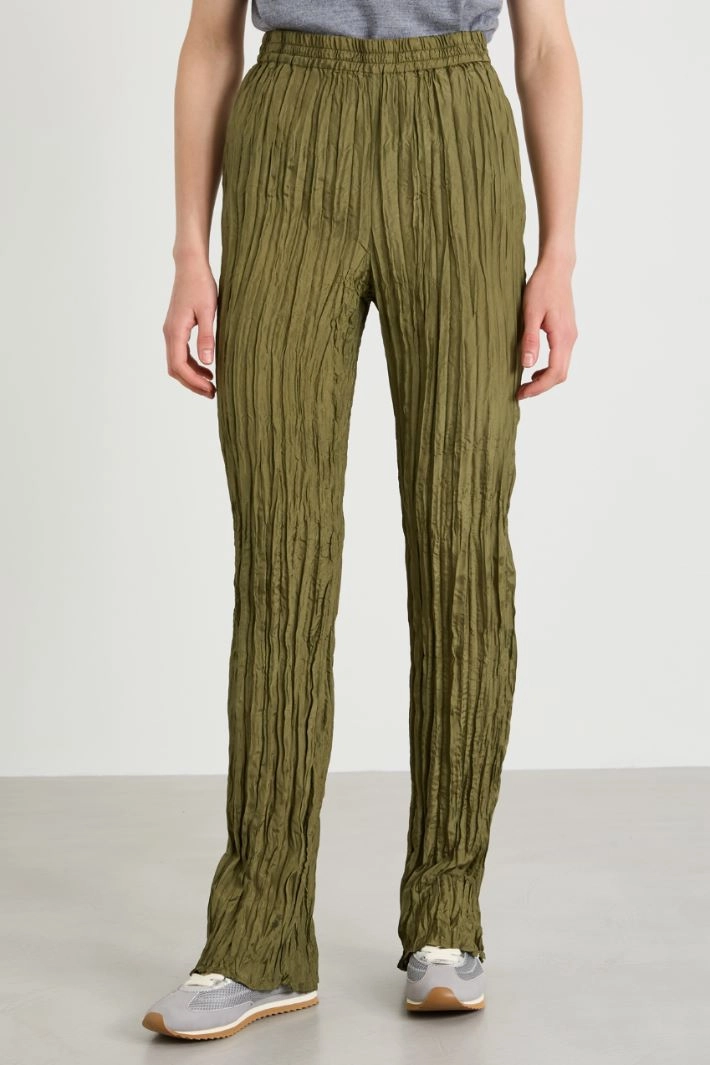 Loose-fit trousers in pure silk canvas with a crinkled effect, with elasticated waistband and inset side pockets.