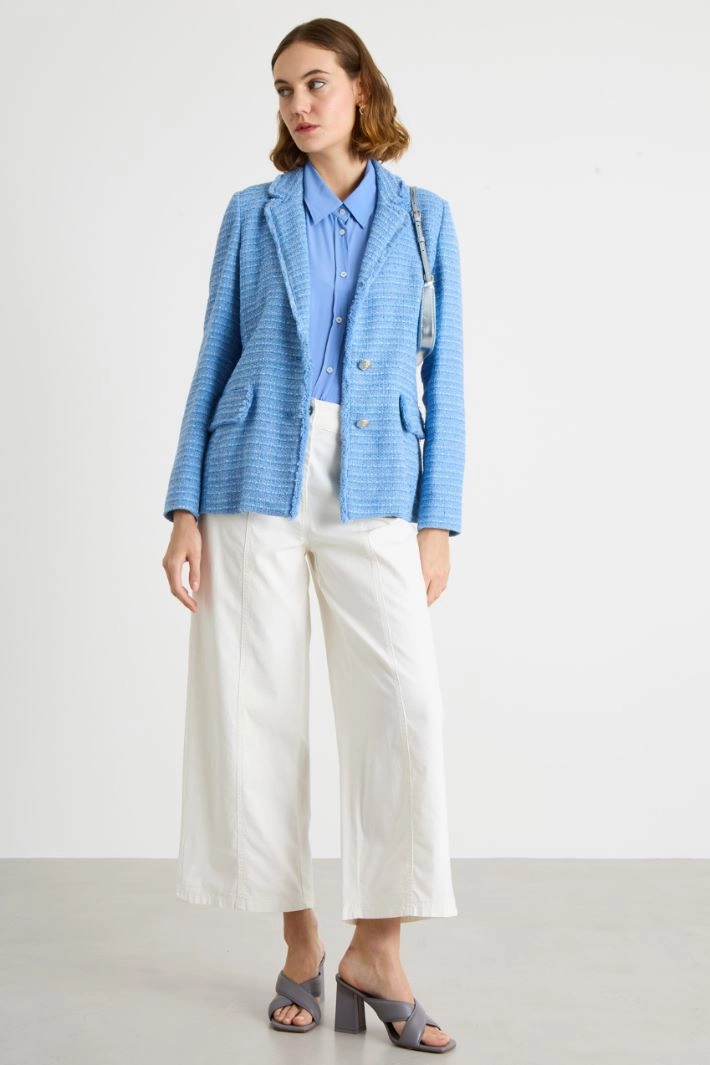 Straight-fit blazer crafted in cotton-blend basketweave tweed, with a lapel collar, long sleeves and side flap pockets. Button fastening.