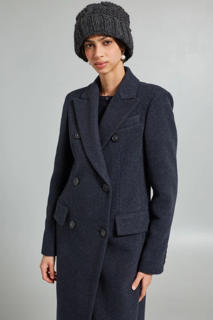 Fabric 60% acrylic, 15% wool, 15% alpaca, 10% viscose; with details in 93% acrylic, 7% polyester.