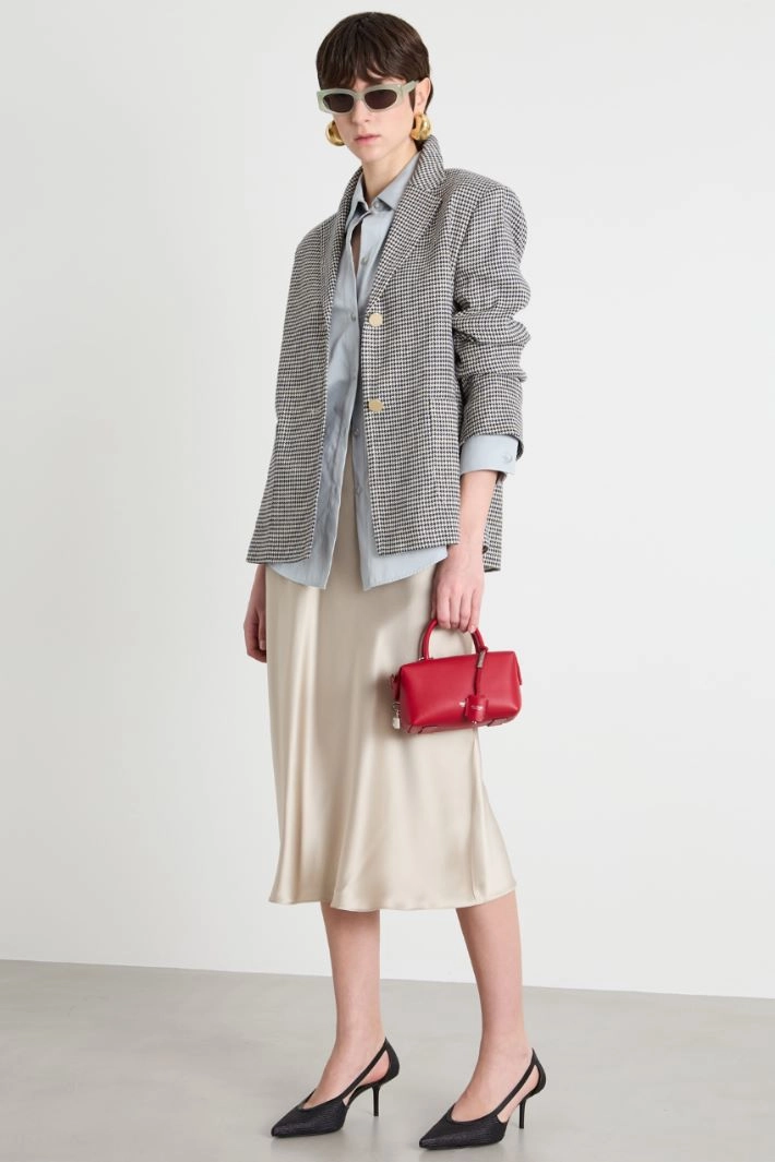 Straight-fit jacket in houndstooth cotton and linen basketweave, with a lapel collar, long sleeves with vented cuffs, patch pockets and a central rear vent. Semi-lined. Button fastening.